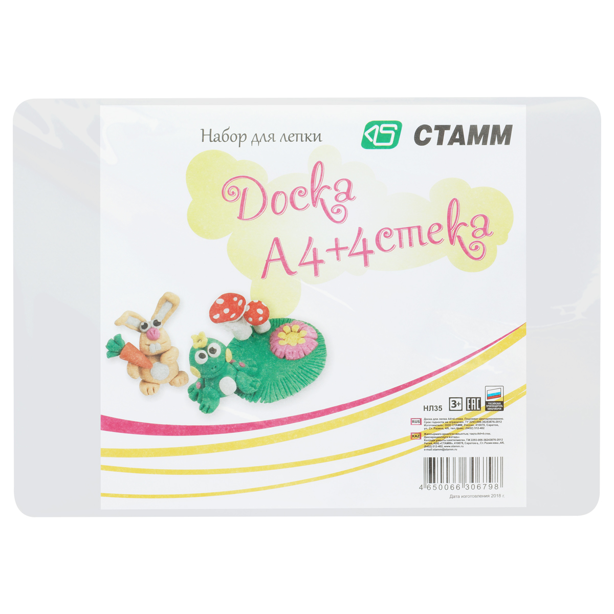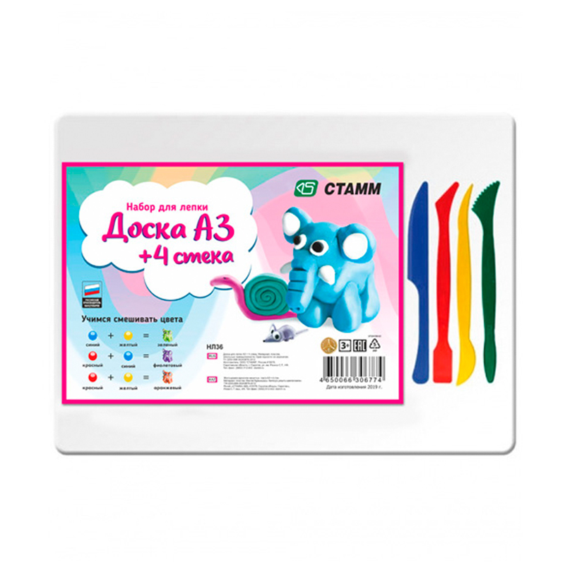 Набор для лепки Стамм, доска А3+4 стека, пластик, белый