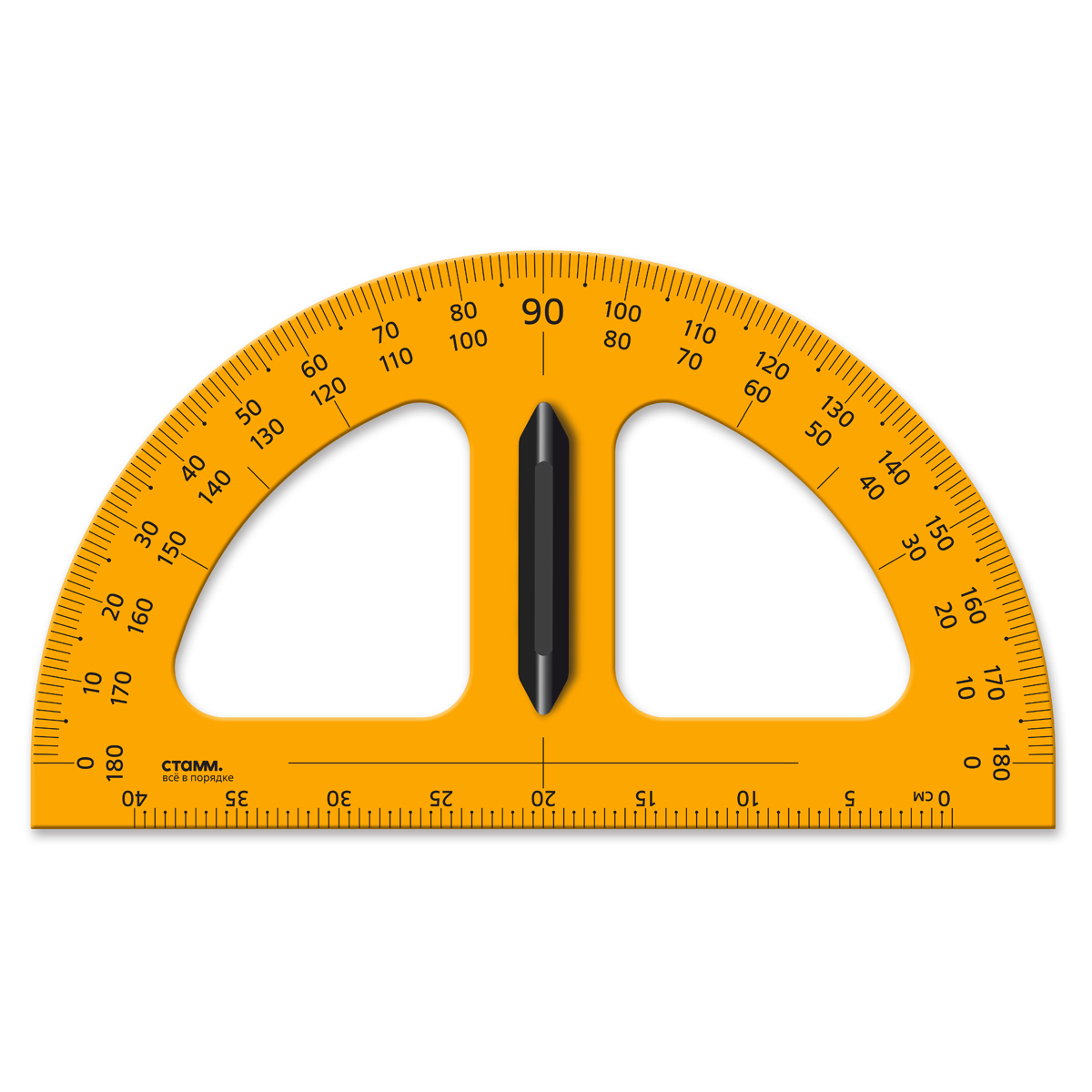 Транспортир для школьной доски СТАММ 50см, 180° СТАММ, пластиковый, желтый, с ручкой