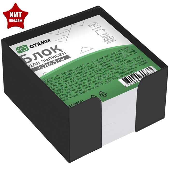 Блок бумаги для записей Стамм "Офис", 9 x 9 x 4,5 см, в пластиковом боксе, 60 г/м²
