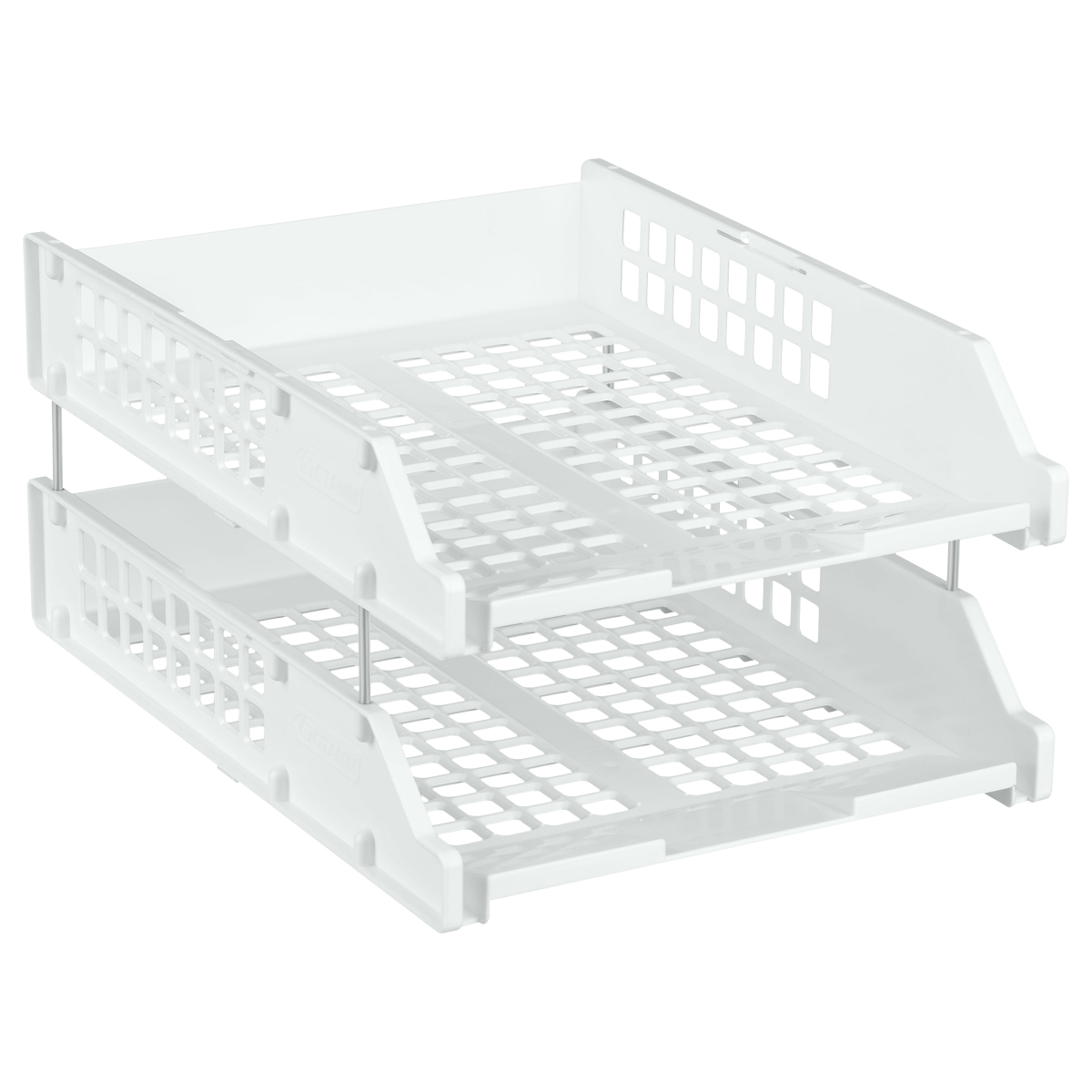 Лоток для бумаг горизонтальный СТАММ "Strong", набор 2шт., на метал. стержнях, белый