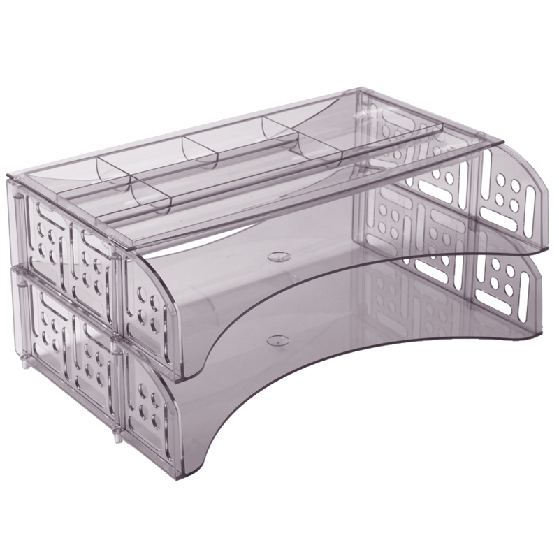 Лоток для бумаг горизонтальный СТАММ "Field", набор 2шт. + органайзер, тонированный серый