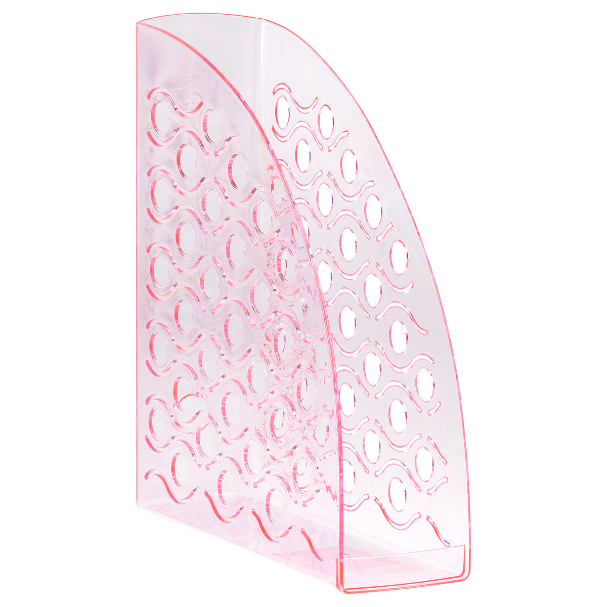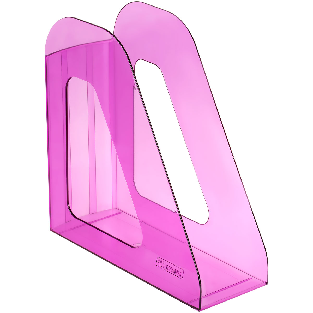 Лоток для бумаг вертикальный СТАММ "Вега", тонированный неоновый розовый, ширина 90мм