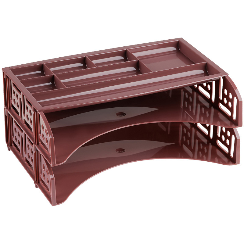 Лоток для бумаг горизонтальный СТАММ "Field", набор 2шт. + органайзер, бордовый Agra