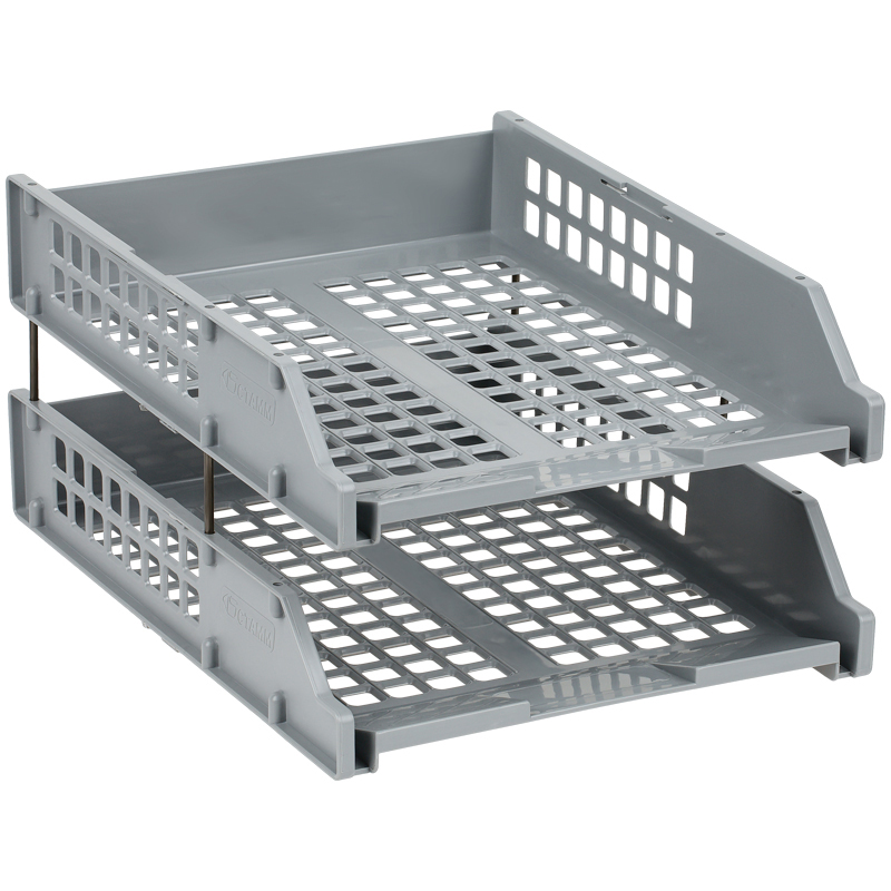 Лоток для бумаг горизонтальный СТАММ "Strong", набор 2шт., на метал. стержнях, серый