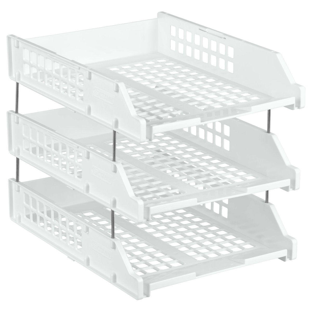 Лоток для бумаг горизонтальный СТАММ "Strong", набор 3шт., на метал. стержнях, белый