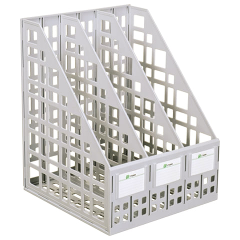 Лоток вертикальный для бумаг (250х245х295 мм), 3 отделения, сетчатый, сборный, серый, ЛТВ-63719
