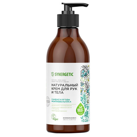 Крем для рук и тела 380 мл SYNERGETIC "Сандал и ягоды можжевельника", натуральный, дозатор, 300010