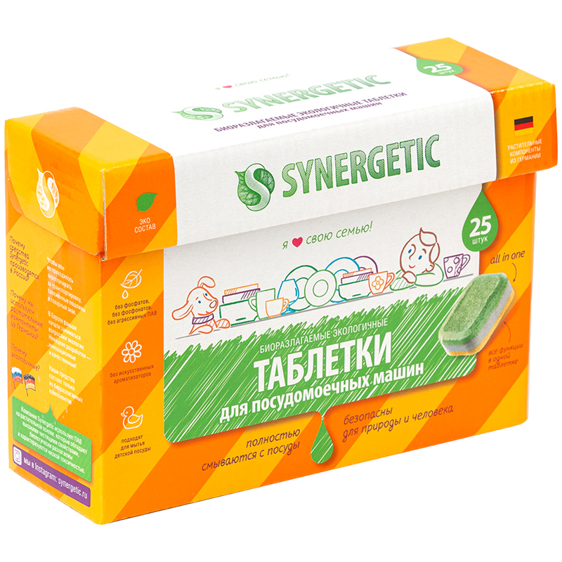 Таблетки для посудомоечной машины Synergetic, биоразлагаемые, бесфосфатные, 25шт