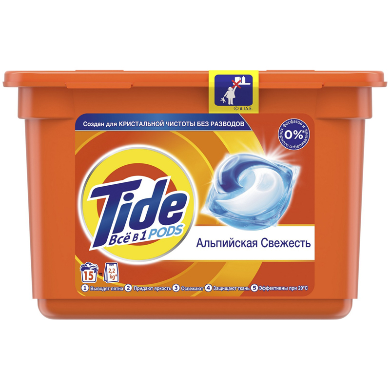 Капсулы для машинной стирки Tide "Альпийская свежесть", 3в1 Pods, 15шт.*22,8г (ПОД ЗАКАЗ)