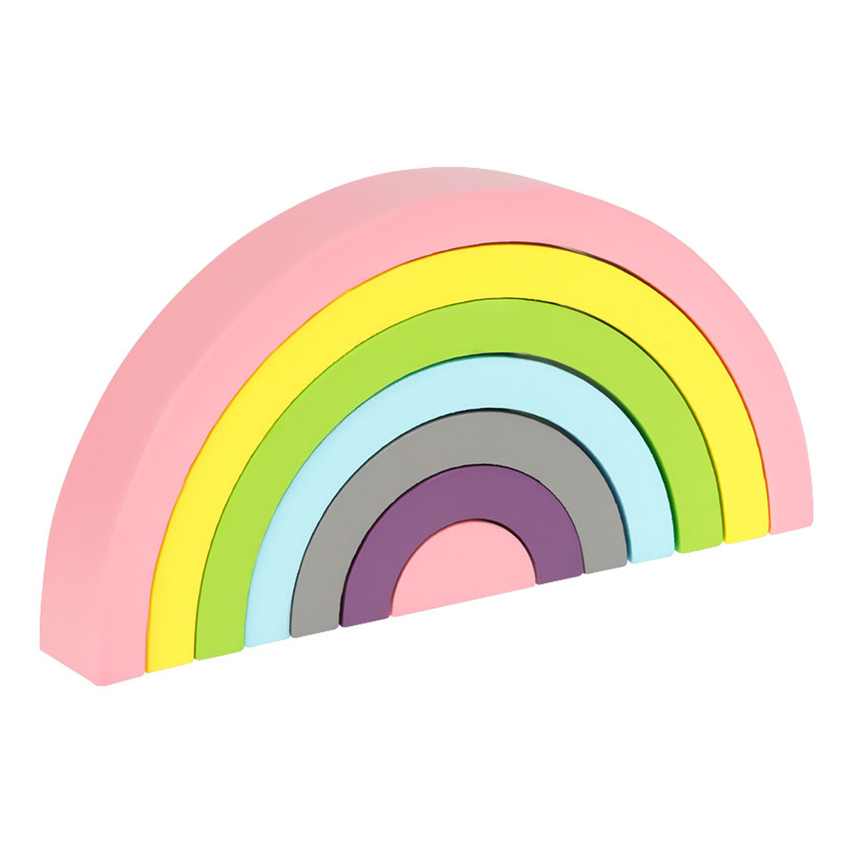 Развивающая игрушка ТРИ СОВЫ Пирамидка "Радуга-дуга", дерево, 7 деталей, пастельные цвета