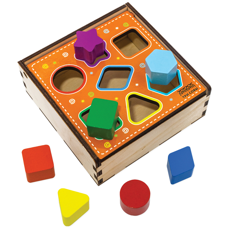 Развивающая игрушка ТРИ СОВЫ Сортер "Фигуры в шкатулке", дерево, 7 деталей
