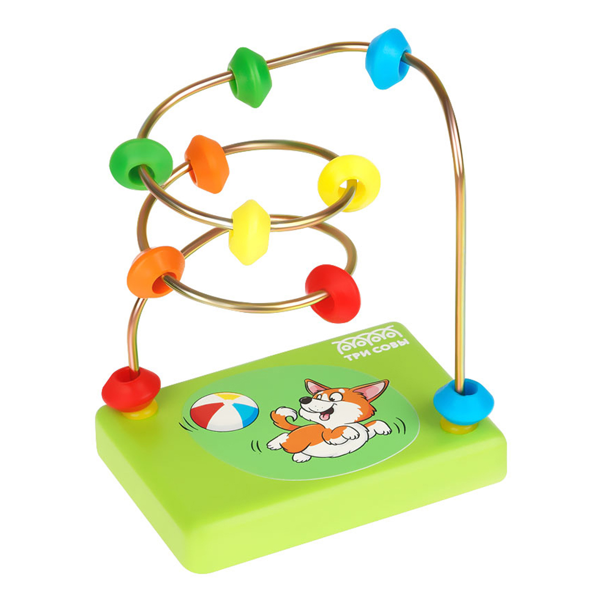 Развивающая игрушка ТРИ СОВЫ Лабиринт "Собачка", деревянное основание, 10 бусин