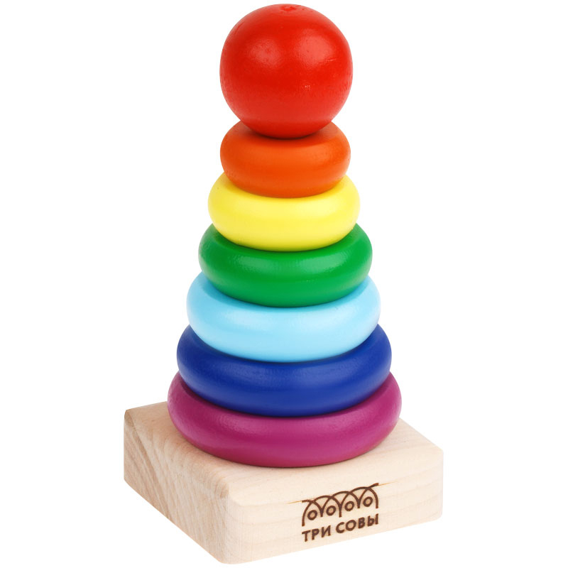 Развивающая игрушка ТРИ СОВЫ Пирамидка "Радуга", дерево, 8 деталей