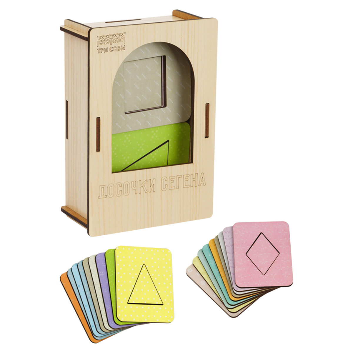 Развивающая игрушка ТРИ СОВЫ "Методика Сегена. Досочки №2", 18 рамок, 18 вкладышей, дерево, пастельные цвета