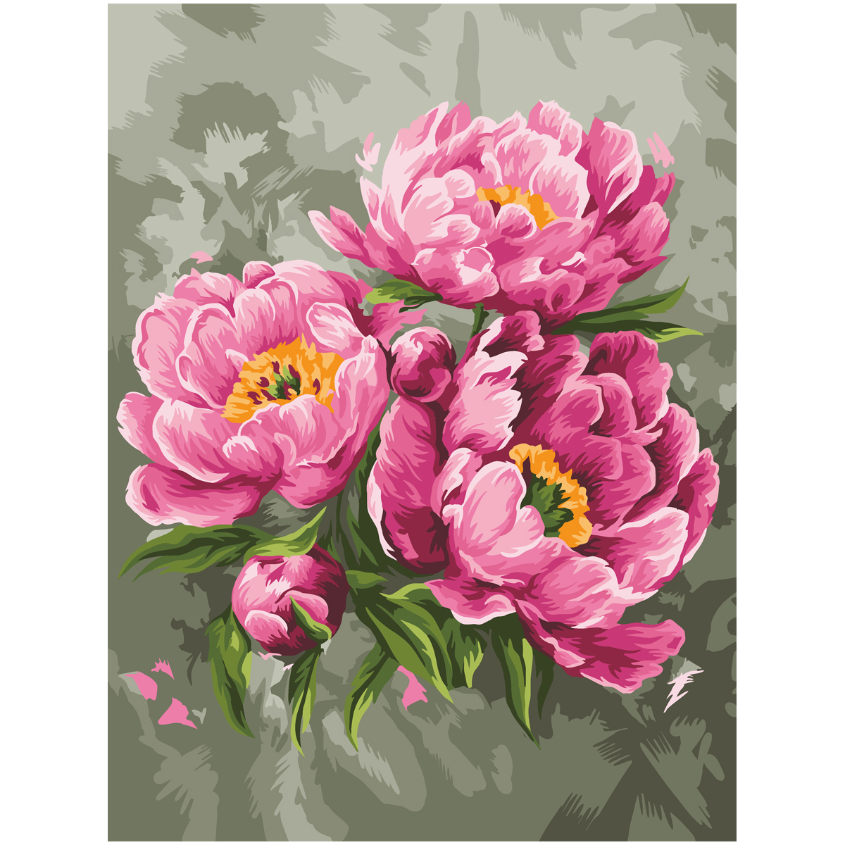 Картина по номерам на картоне ТРИ СОВЫ "Розовые пионы", 30*40, с акриловыми красками и кистями