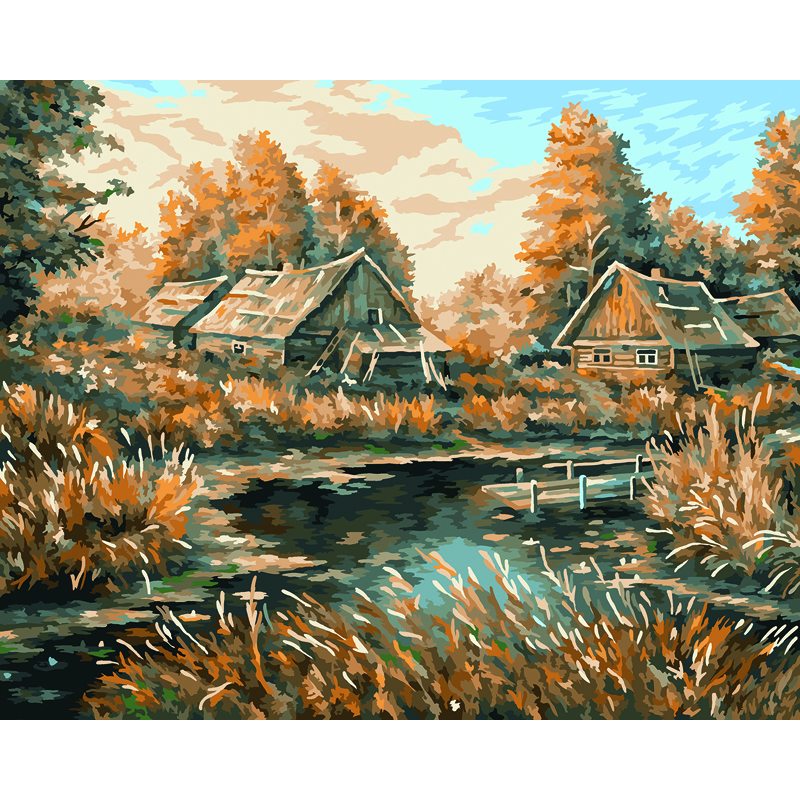Картина по номерам на холсте ТРИ СОВЫ "Деревня", 40*50см, с акриловыми красками и кистями