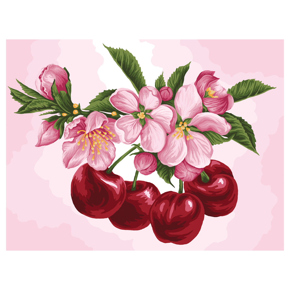 УЦЕНКА - Картина по номерам на картоне ТРИ СОВЫ "Вишни", 30*40, с акриловыми красками и кистями