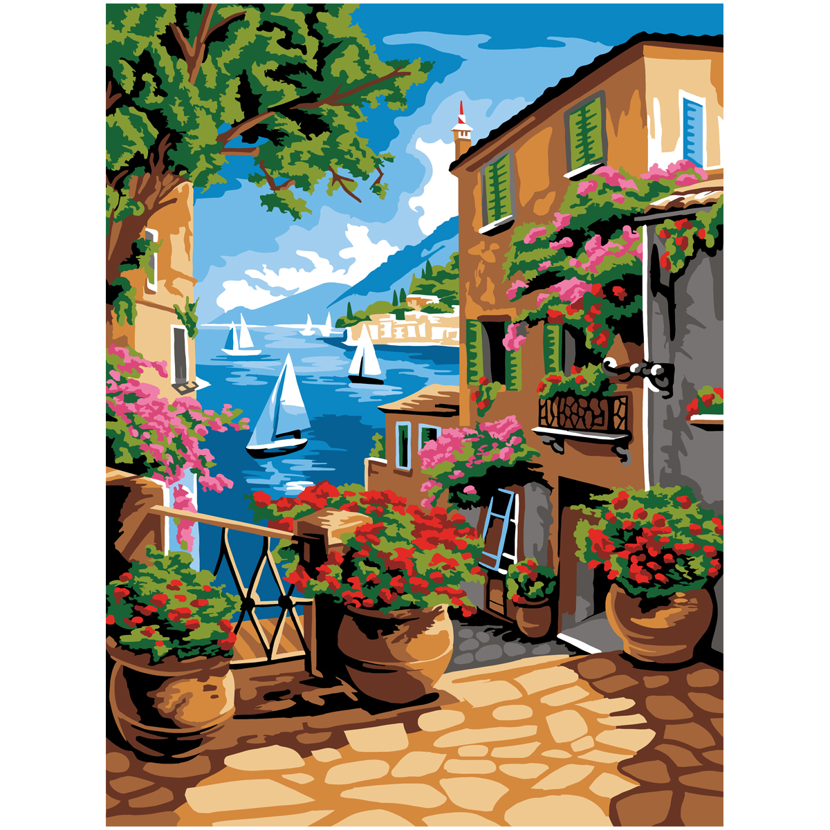 Картина по номерам на картоне ТРИ СОВЫ "Лигурийское побережье", 30*40, с акриловыми красками и кистями