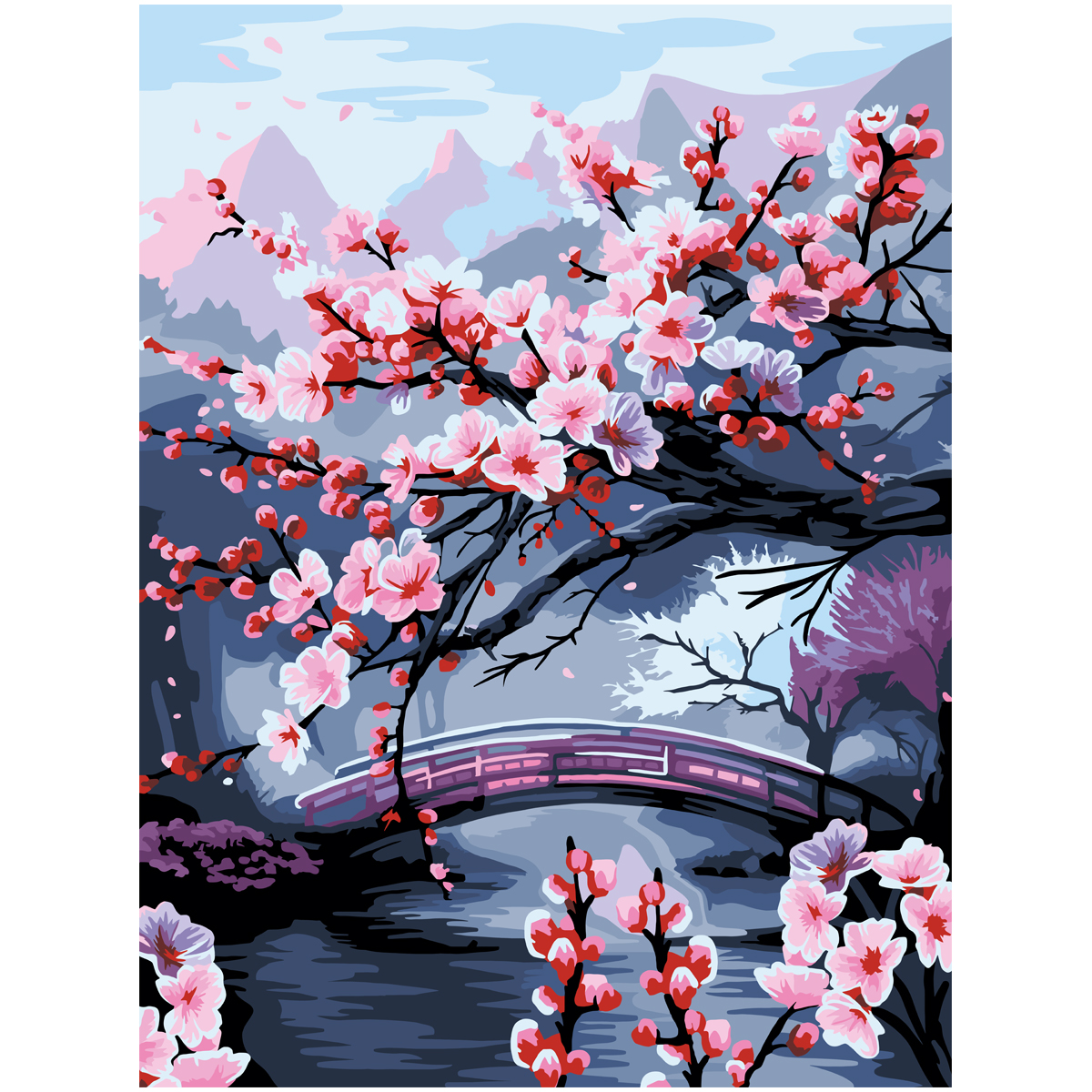 Картина по номерам на картоне ТРИ СОВЫ "Цветущая сакура", 30*40, с акриловыми красками и кистями