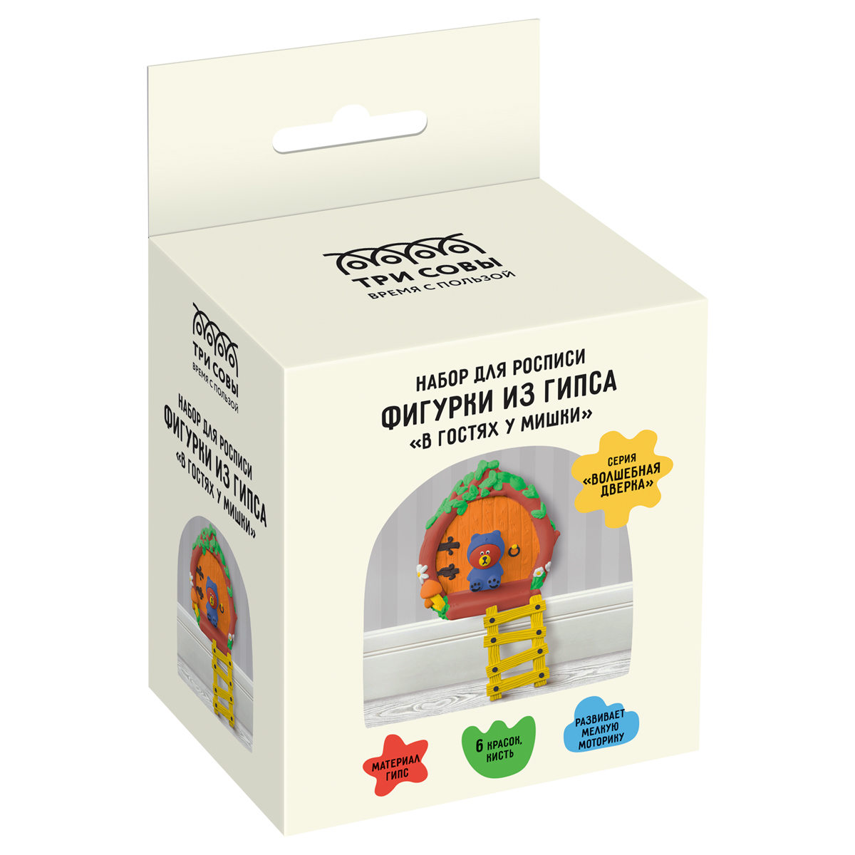 Набор для росписи из гипса ТРИ СОВЫ "В гостях у Мишки", с красками и кистью, картонная коробка