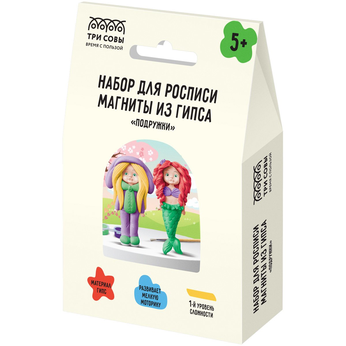 Набор для росписи из гипса ТРИ СОВЫ "Подружки", магниты, 2 фигурки, с красками и кистью, картонная коробка
