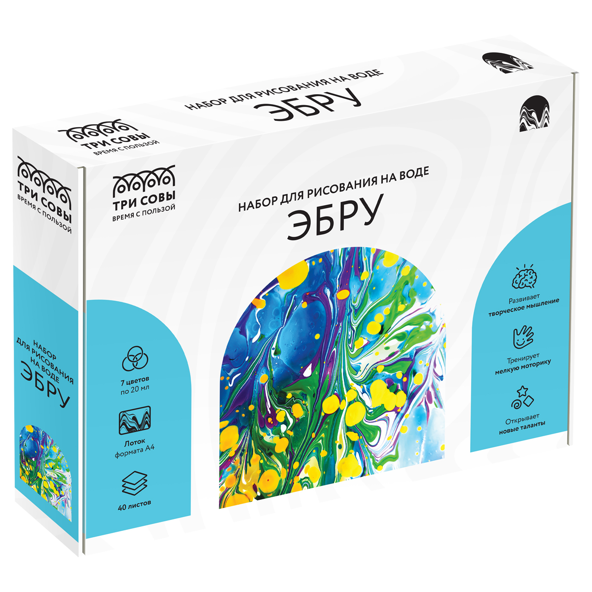 Набор для рисования на воде ТРИ СОВЫ "Краски Эбру", 7 цветов, А4, картонная коробка