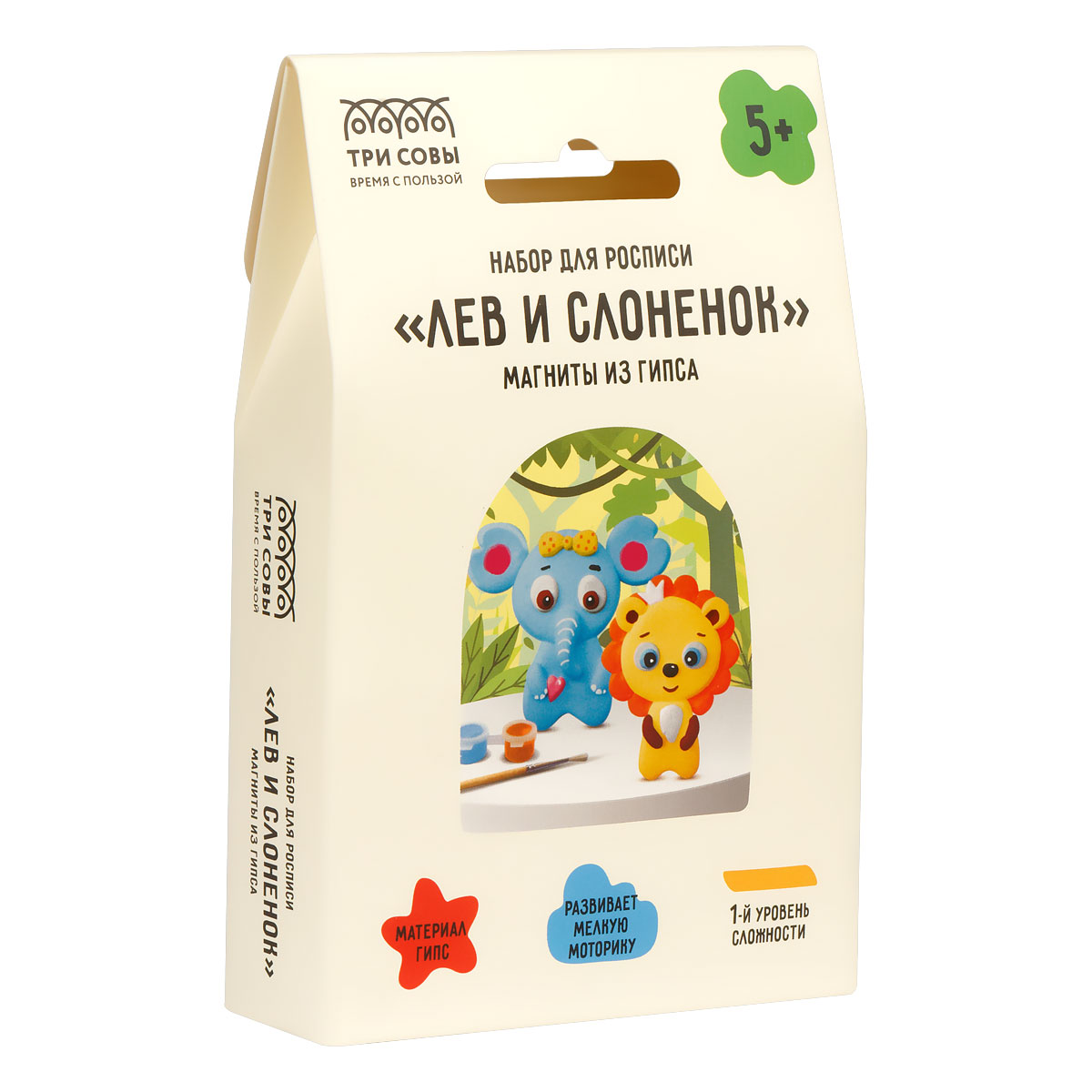 Набор для росписи из гипса ТРИ СОВЫ "Лев и Слоненок", магниты, 2 фигурки, с красками и кистью, картонная коробка