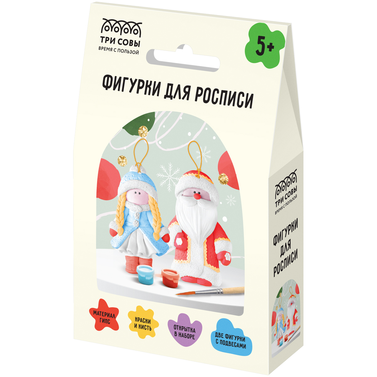 Набор для росписи фигурок из гипса ТРИ СОВЫ "Дед Мороз и Снегурочка", 2 фигурки с подвесом, с красками и кистью, картонная коробка
