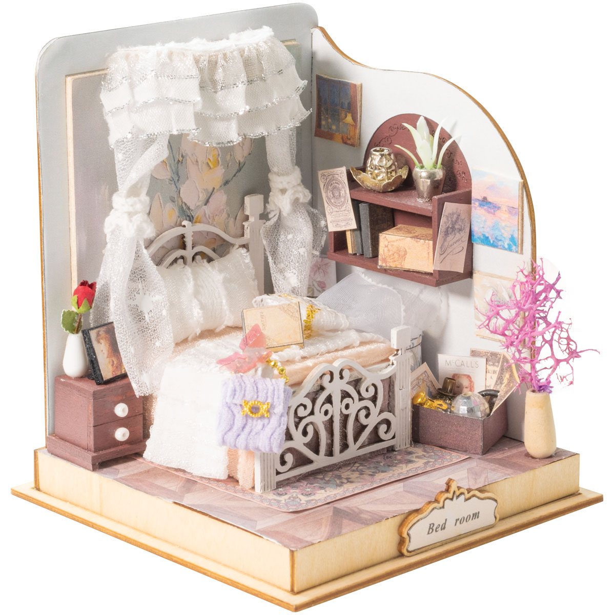 Сборная модель ТРИ СОВЫ, Румбокс "Уютная спальня", 10*10*11,3см, картонная коробка