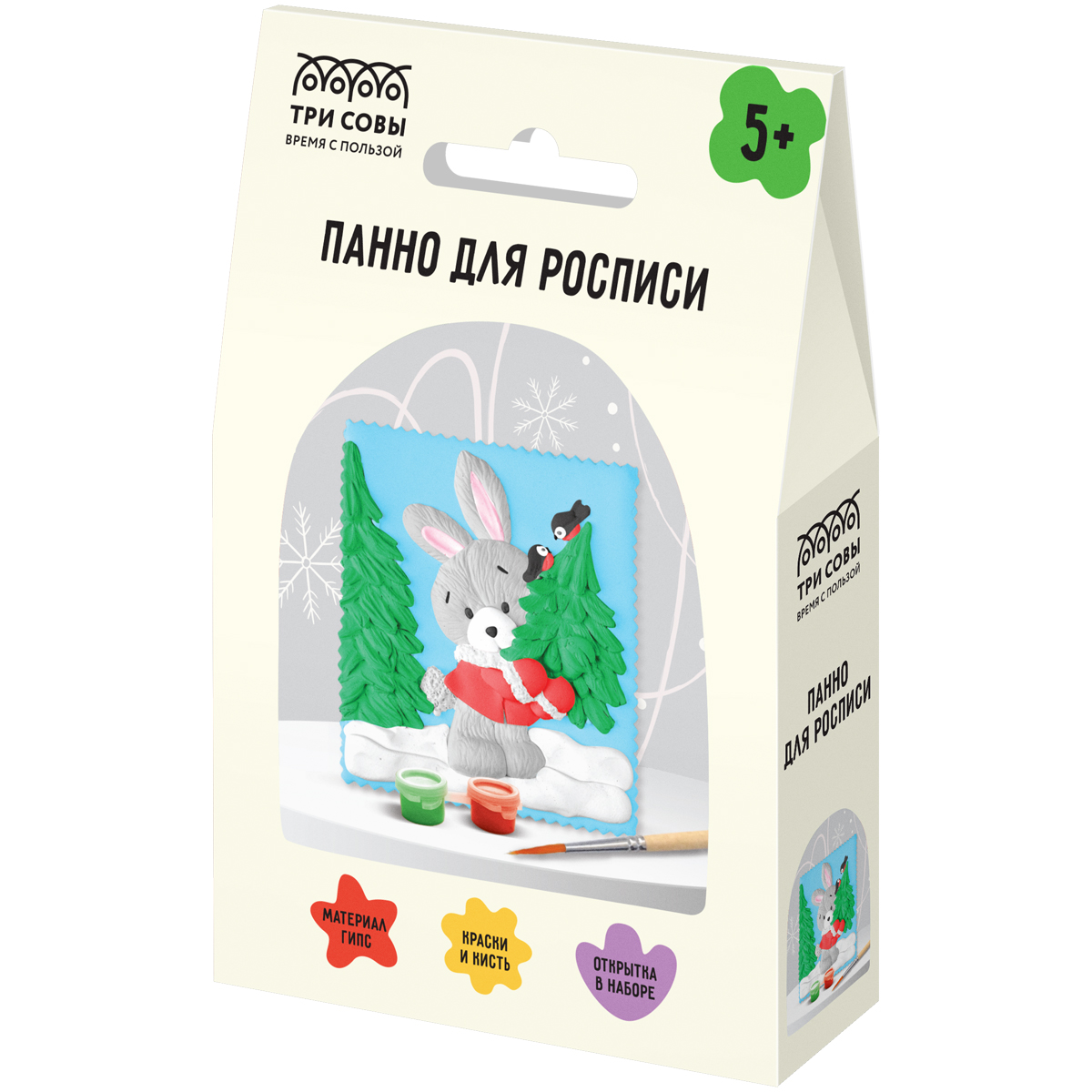 Панно для росписи из гипса ТРИ СОВЫ "Зайка с ёлочкой", с красками и кистью, картонная коробка