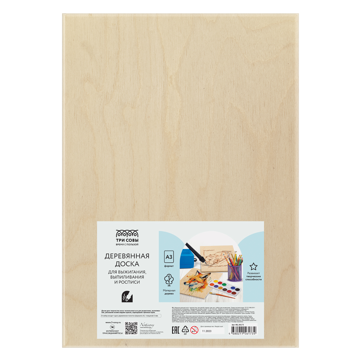 Деревянная доска для выжигания, выпиливания, росписи по дереву ТРИ СОВЫ, 1шт., А3, без прибора
