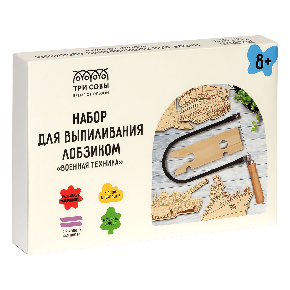 Набор для выпиливания лобзиком ТРИ СОВЫ "Военная техника" (лобзик, выпиловочный столик, фанерки 5шт., 21*15см)