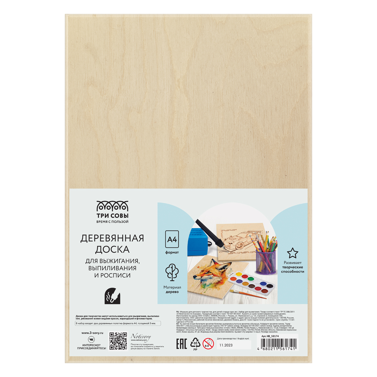 Деревянная доска для выжигания, выпиливания, росписи по дереву ТРИ СОВЫ, 2шт., А4, без прибора