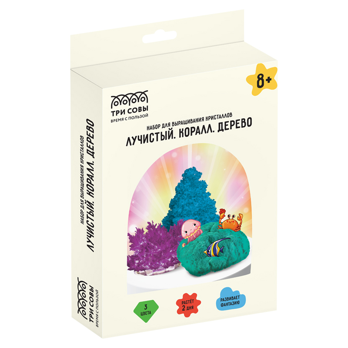 Набор для выращивания кристаллов 3в1 ТРИ СОВЫ "Лучистый. Коралл. Дерево", фиолетовый, изумрудный, голубой