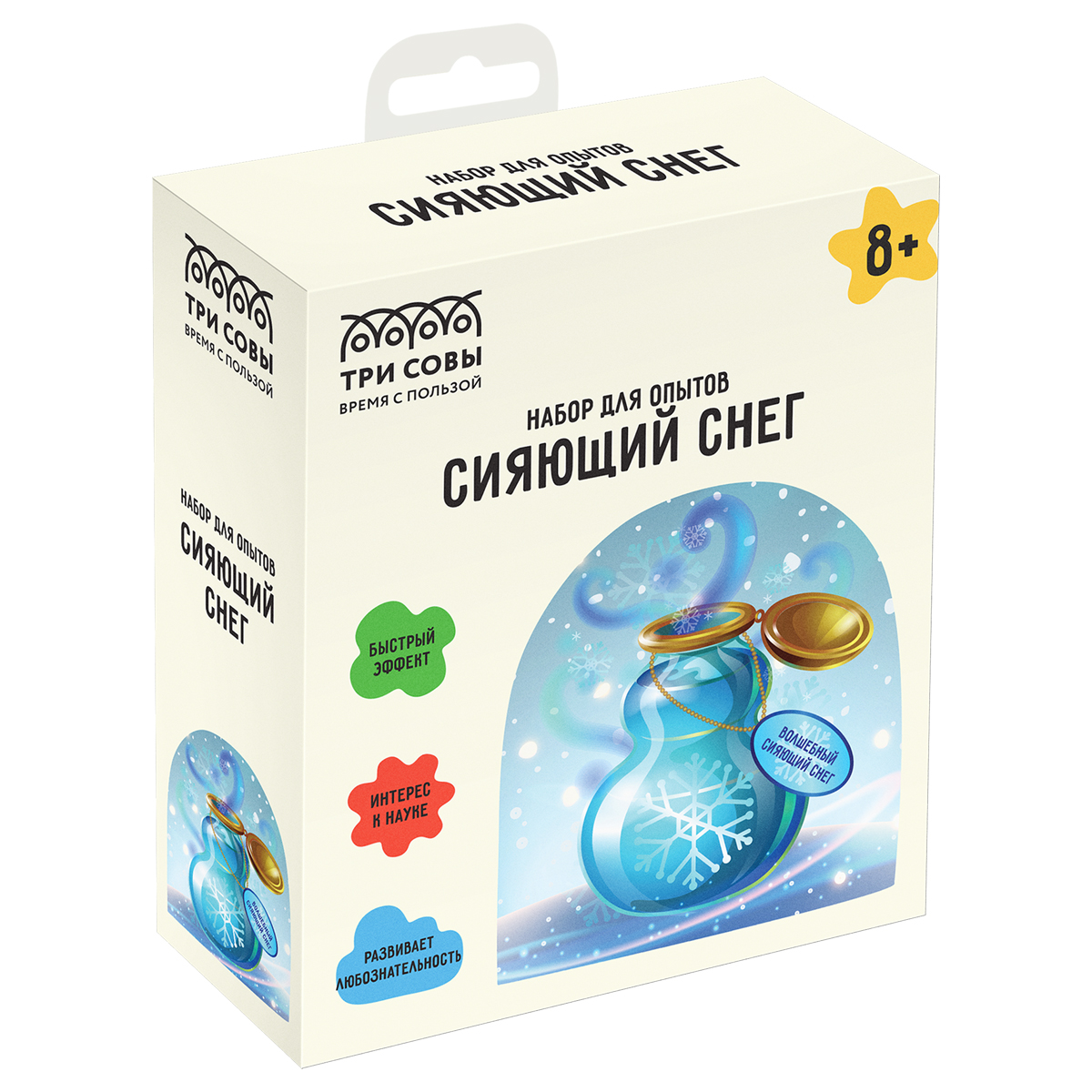 Набор для проведения опытов ТРИ СОВЫ "Искусственный сияющий снег", картонная коробка, европодвес