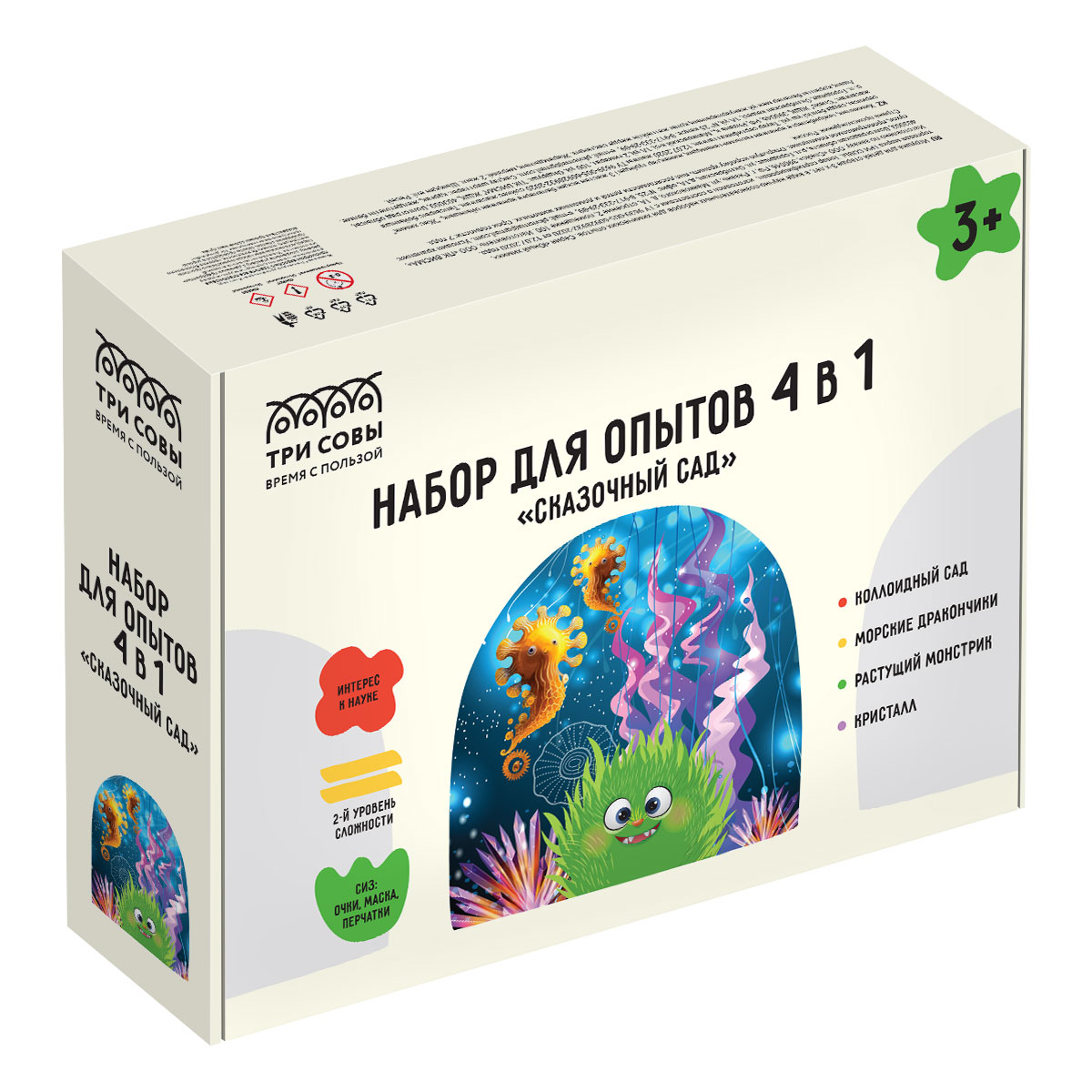Набор для опытов 4в1 ТРИ СОВЫ "Сказочный сад", коллоидный сад, морские дракончики, растущий монстрик, кристалл, СИЗ, картонная коробка