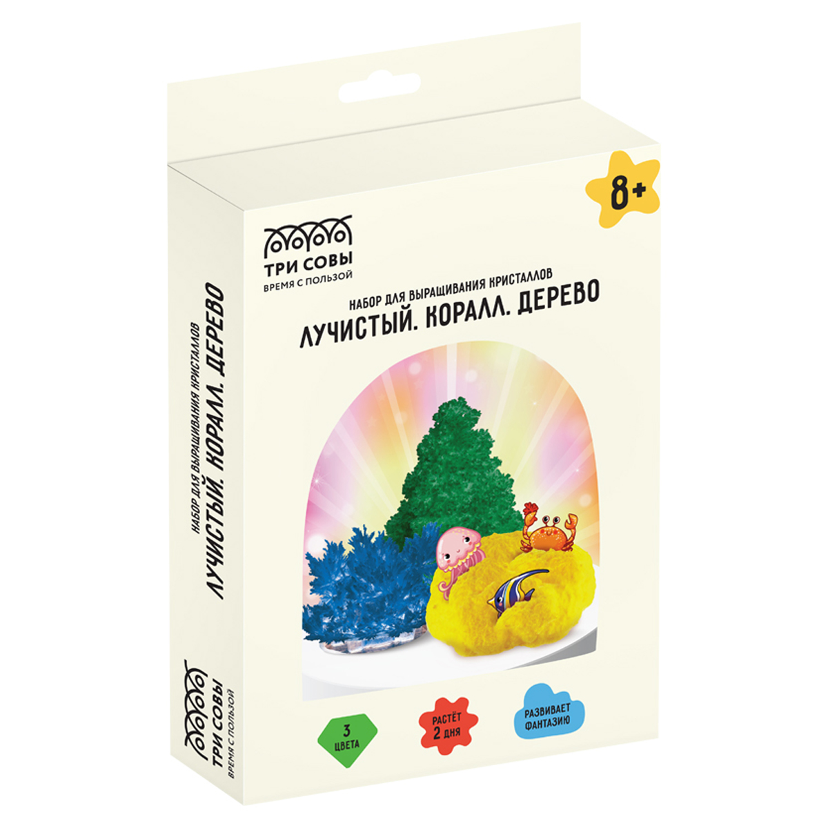 Набор для выращивания кристаллов 3в1 ТРИ СОВЫ "Лучистый. Коралл. Дерево", синий, желтый, зеленый