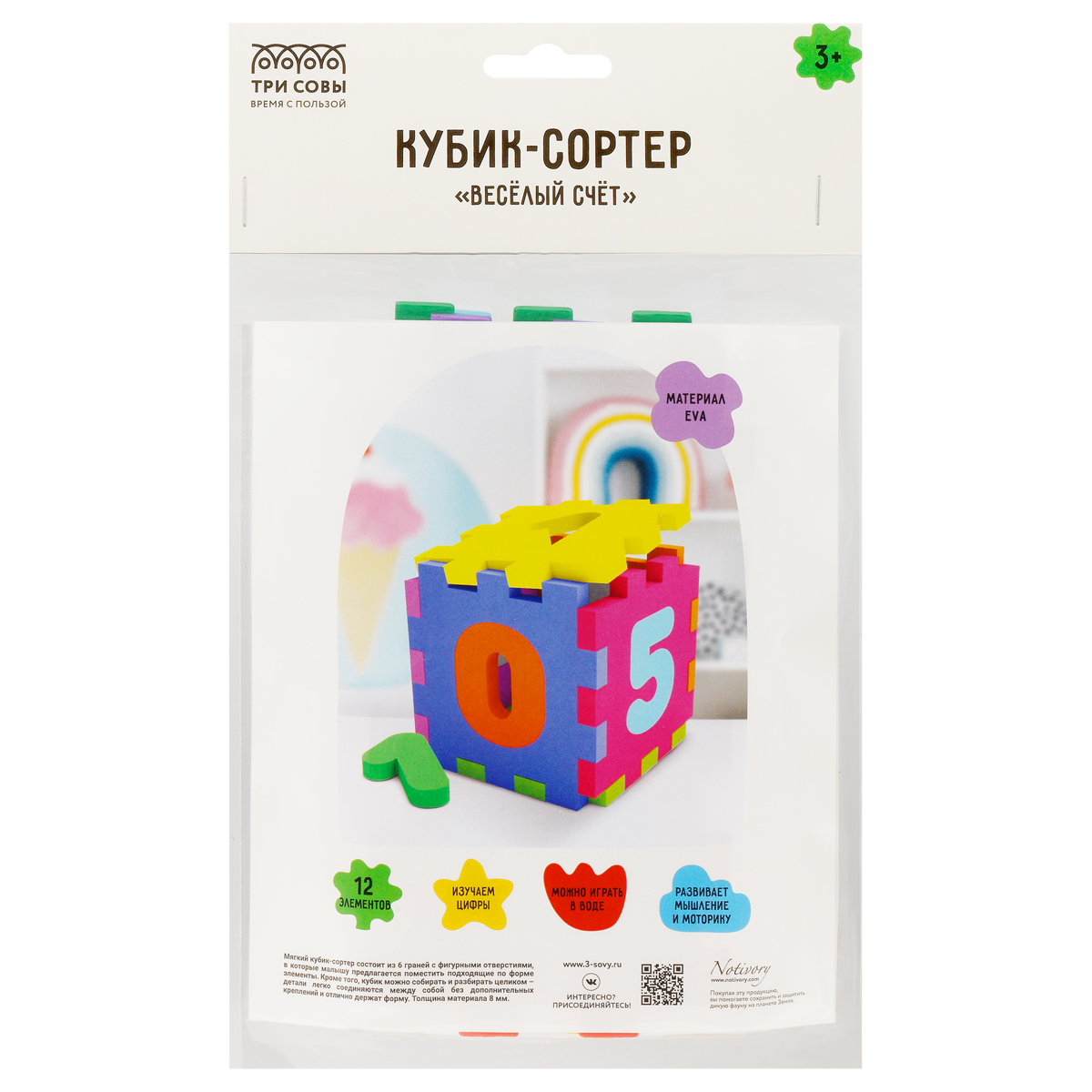 Развивающая игрушка ТРИ СОВЫ Кубик-сортер "Веселый счет", EVA, 6 пазлов, 12 элементов