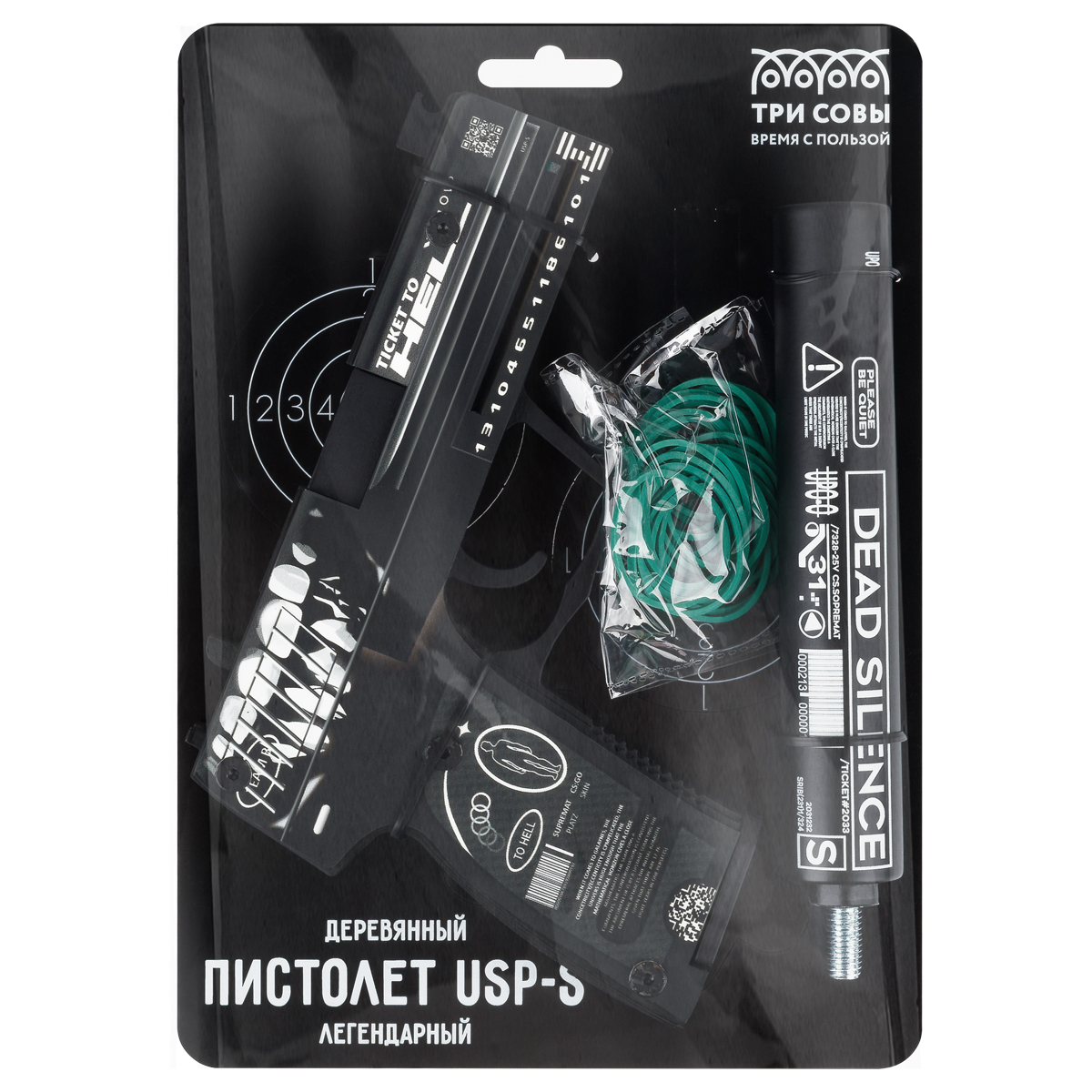 Пистолет деревянный ТРИ СОВЫ USP-S, серия легендарный, "Билет в темноту", подложка ХДФ с европодвесом, термоусадка