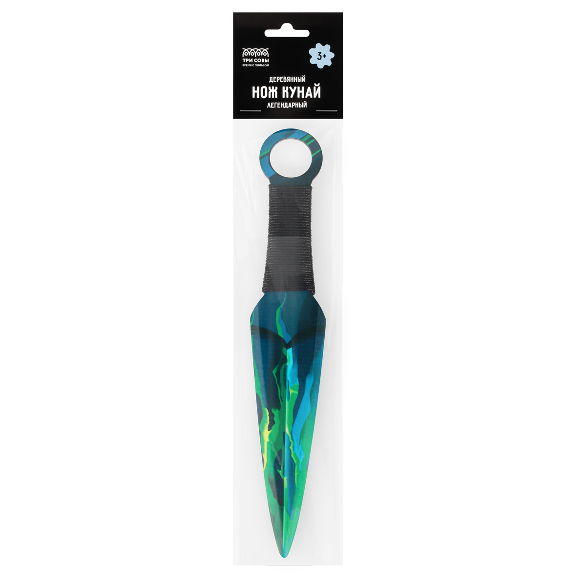 Нож деревянный ТРИ СОВЫ Кунай, серия легендарный, "Холодное пламя", пакет с европодвесом