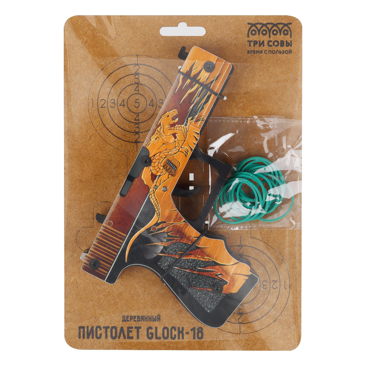 Пистолет деревянный ТРИ СОВЫ Glock-18, "Реликвия", подложка ХДФ с европодвесом, термоусадка