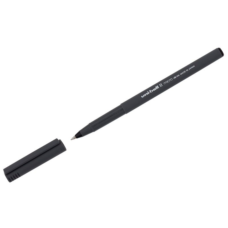 Ручка-роллер Uni-Ball II Micro, ЧЕРНАЯ, корпус черный, узел 0,5 мм, линия 0,24 мм, UB-104 Black