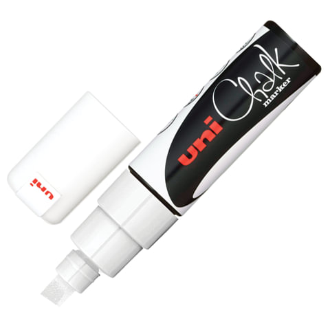 Маркер меловой UNI "Chalk", 8 мм, БЕЛЫЙ, влагостираемый, для гладких поверхностей, PWE-8K WHITE