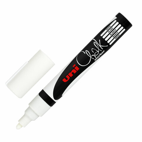 Маркер меловой UNI "Chalk", 1,8-2,5 мм, БЕЛЫЙ, влагостираемый, для гладких поверхностей, PWE-5M WHITE