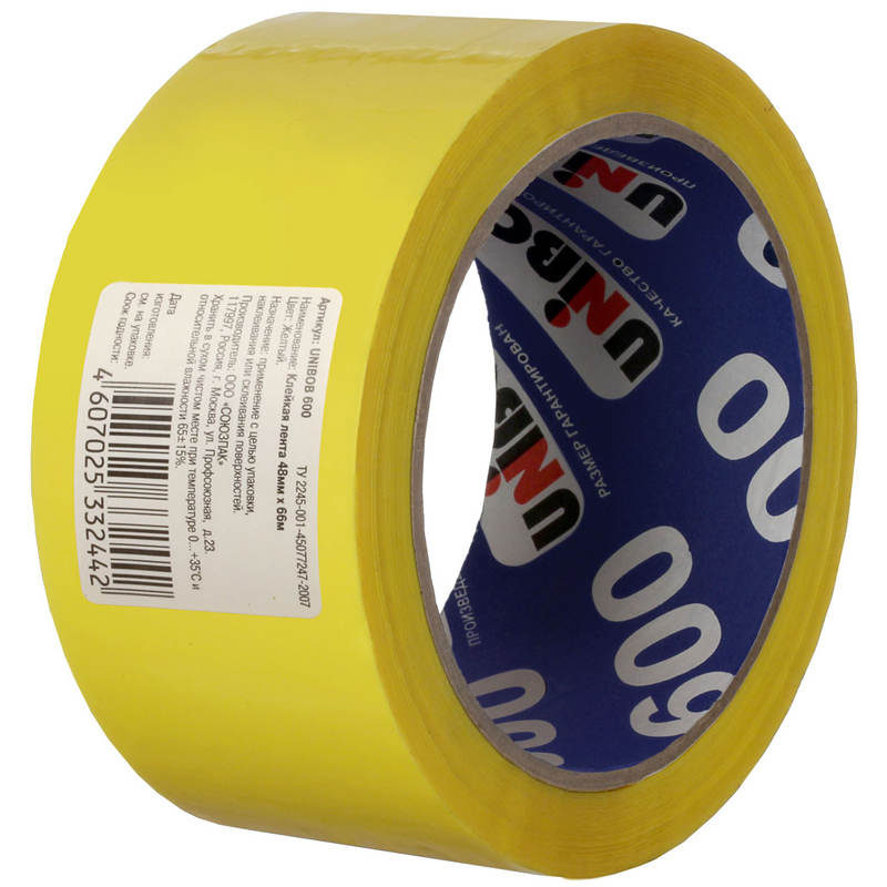 Клейкая лента упаковочная Unibob, 48мм*66м, 45мкм, желтая ИУ