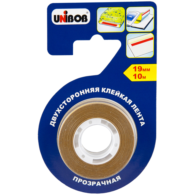 Клейкая лента двусторонняя Unibob, 19мм*10м, прозрачная, полипропилен, блистер