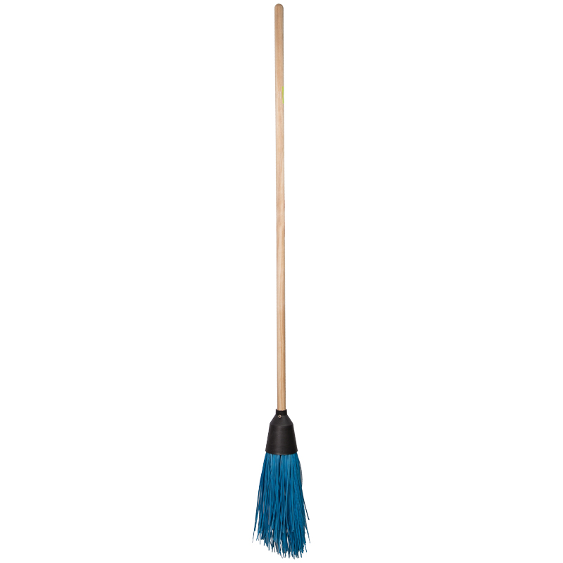 Метла Vega, синтетическая, для улицы, круглая, 5 колец, щетина 30см, с дерев. черенком 120см