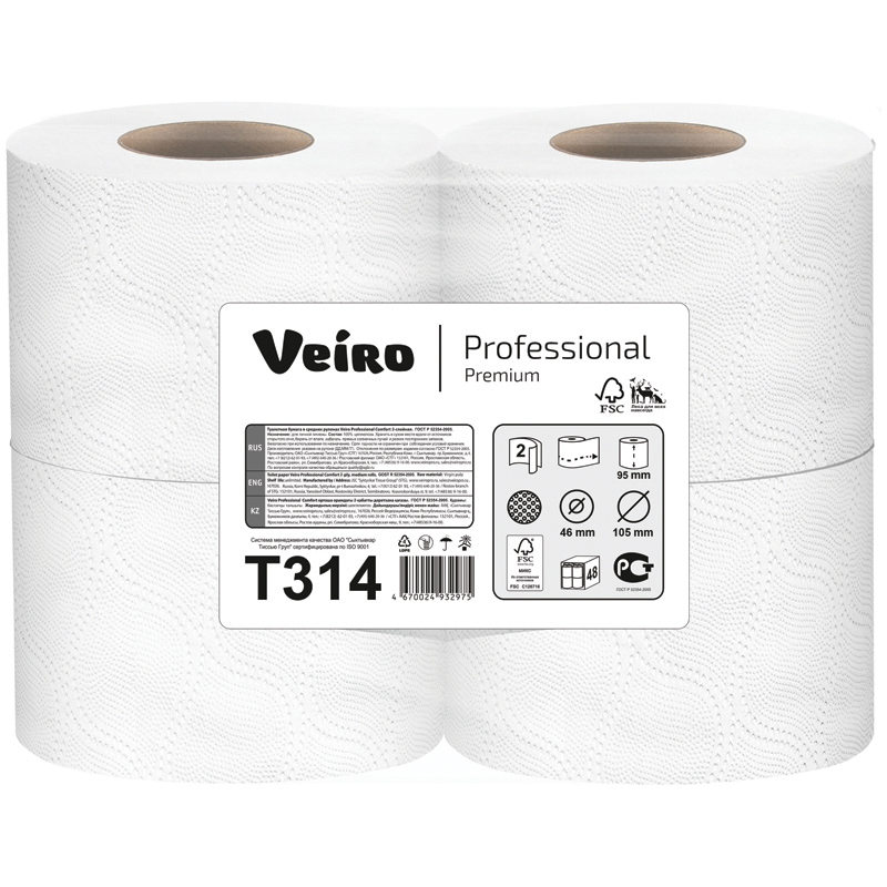 Бумага туалетная Veiro Professional "Premium", 2-слойная, 4шт., 20м/рул., белая