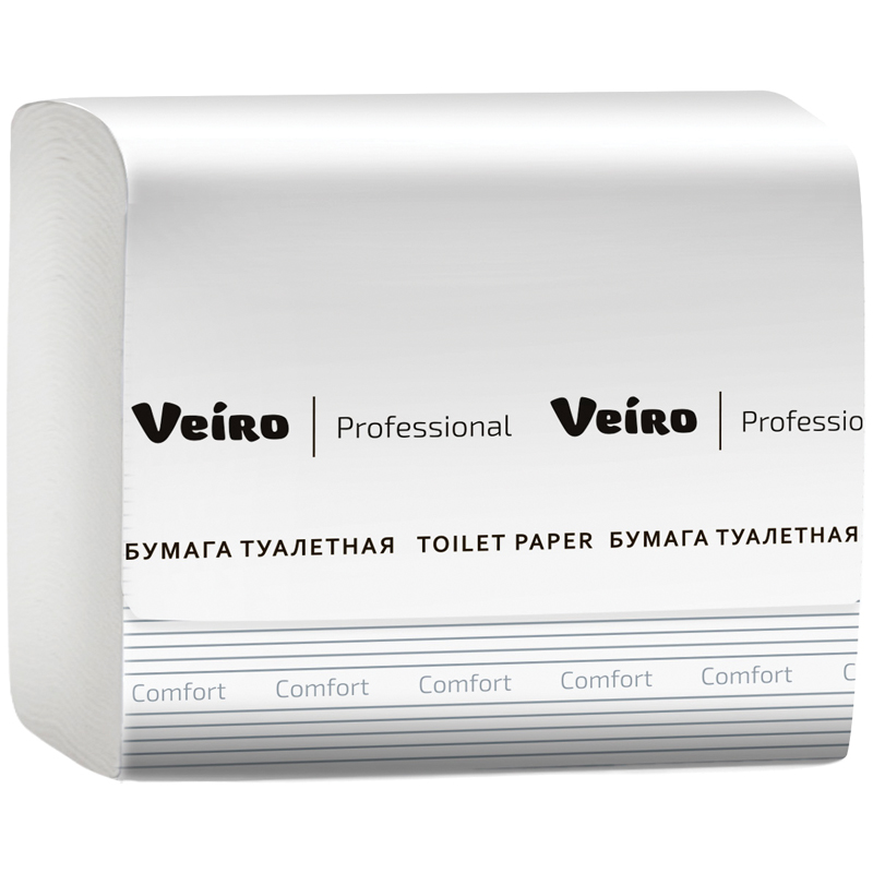 Бумага туалетная листовая Veiro Professional "Comfort"(V-сл)(T3) 2-слойная, 250лист/пач, 21*10.8см, белая