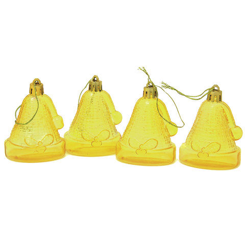 Украшения елочные подвесные "Колокольчики", НАБОР 4 шт., 6,5 см, пластик, полупрозрачные, лимоннные, 59597